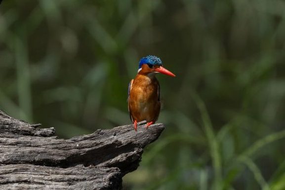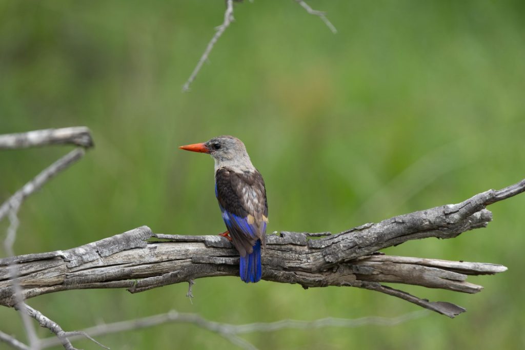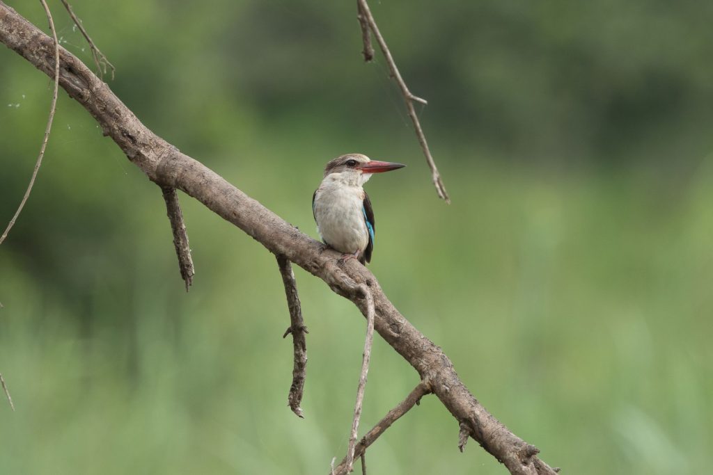 En bij het Krugerpark in de zomer hoort ook de woodland kingfisher. De roep van deze soort kingfisher hoor je van verre en is kenmerkend voor het Krugerpark in de zomer. Je hoort het vaker dan dat je het vogeltje ziet, maar hieronder toch een mooie foto van deze vogel. De vogel trekt in de winter richting evenaar, maar vanaf november hoor en zie je deze in het Krugerpark. En niet alleen in het Krugerpark, we hebben deze ook al in onze tuin in Pretoria gehoord en gezien.