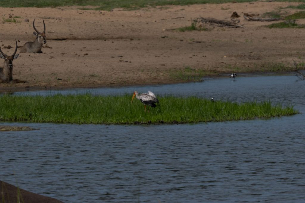 Dit alles zorgde natuurlijk voor enig oponthoud, maar we waren nog net voor de middag in het park. Het was inmiddels 37 graden en dat zorgde ervoor dat we niet erg veel dieren hebben gezien. We zijn via Afsaal (lunch) naar Skukuza gereden, via Lake Panic. Daar hebben we nog wel een paar mooie vogels gezien. Uiteindelijk kwamen we rond half vijf bij Pretoriuskop aan. We wilden eerst nog een laatste rondje rijden, maar het weerbericht gaf aan dat het later die avond (rond 7-8 uur) behoorlijk zou gaan regenen. We besloten daarom de braai maar wat vroeger aan te steken en op tijd te braaien. En dat was maar goed ook, want niet lang nadat wij klaar waren, begon het behoorlijk te regenen (en onweren). De verdere nacht heeft het eigenlijk voortdurend geregend en zelfs de volgende ochtend regende het nog bij het vroege ochtendrondje. We hebben dan ook niet veel dieren gezien.