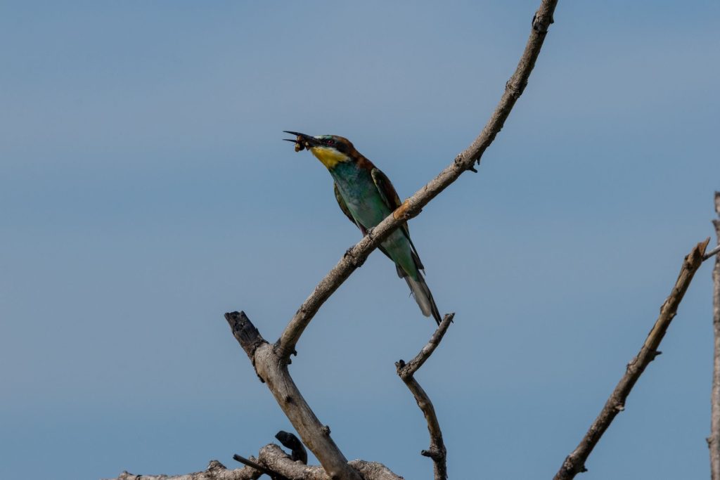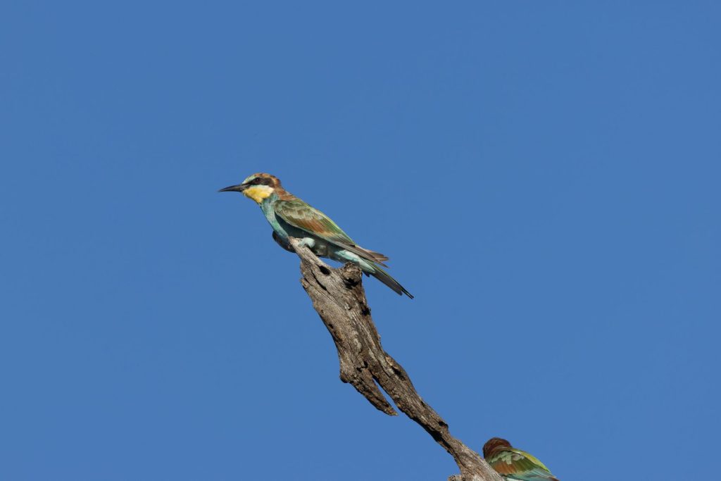 Die middag was het erg warm, waardoor we besloten geen laat middagrondje meer te rijden, maar te relaxen bij onze bungalow. Gelukkig hadden we ook een nieuwe, goed regelbare en stille airco in dit kamp. De volgende ochtend (31 december) hebben we nog weer een vroeg ochtendrondje gereden en kwamen een paartje met 2 juvenile carmine bee-eaters tegen: