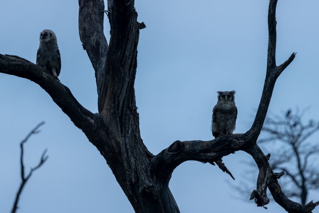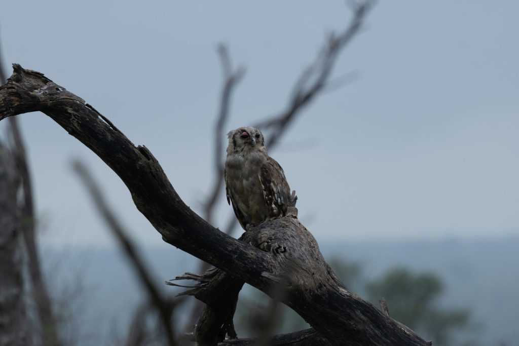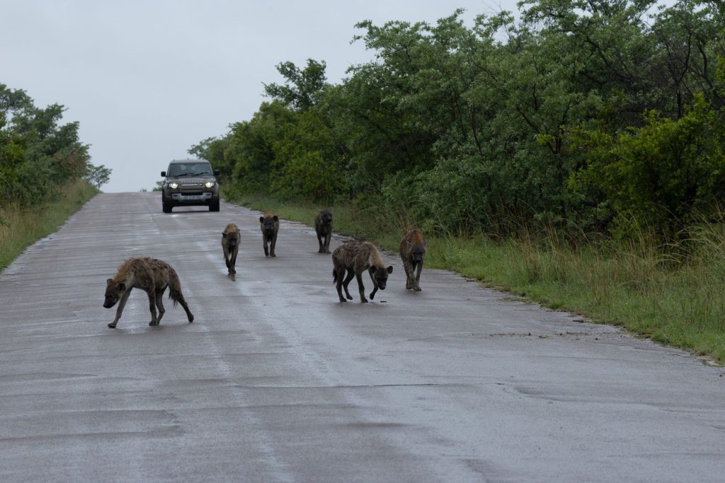De volgende ochtend besloten we riching Lower Sabie te rijden en daar te ontbijten. Dan vandaar via de S25, langs crocodile river, naar Malalane en dan terug naar Skukuza. Allereerst hadden we hyena’s op de weg, vlak buiten de poort in Skukuza. Onderweg zagen we ook nog een uil: