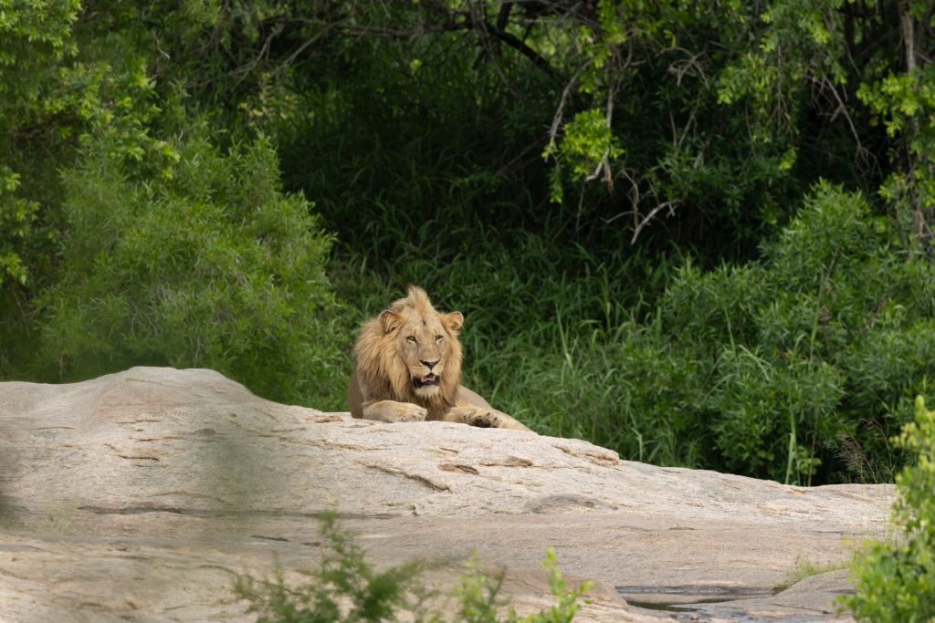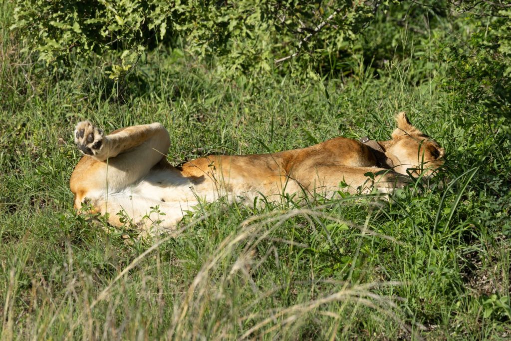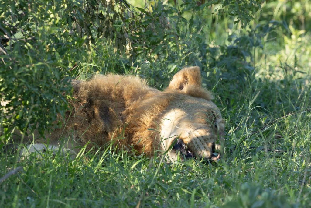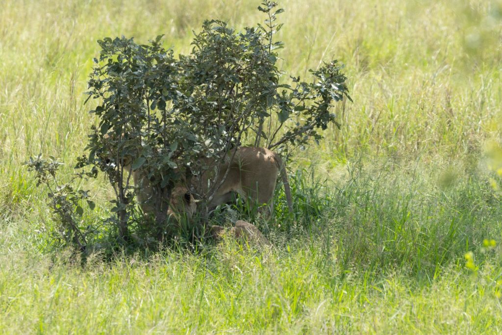 Na het ontbijt zijn we dan weer terug richting Skukuza gereden, voor onze laatste overnachting. Onderweg kwamen we leeuwen tegen, die zich goed verstopt hadden onder een struikje, ter bescherming voor de zon: