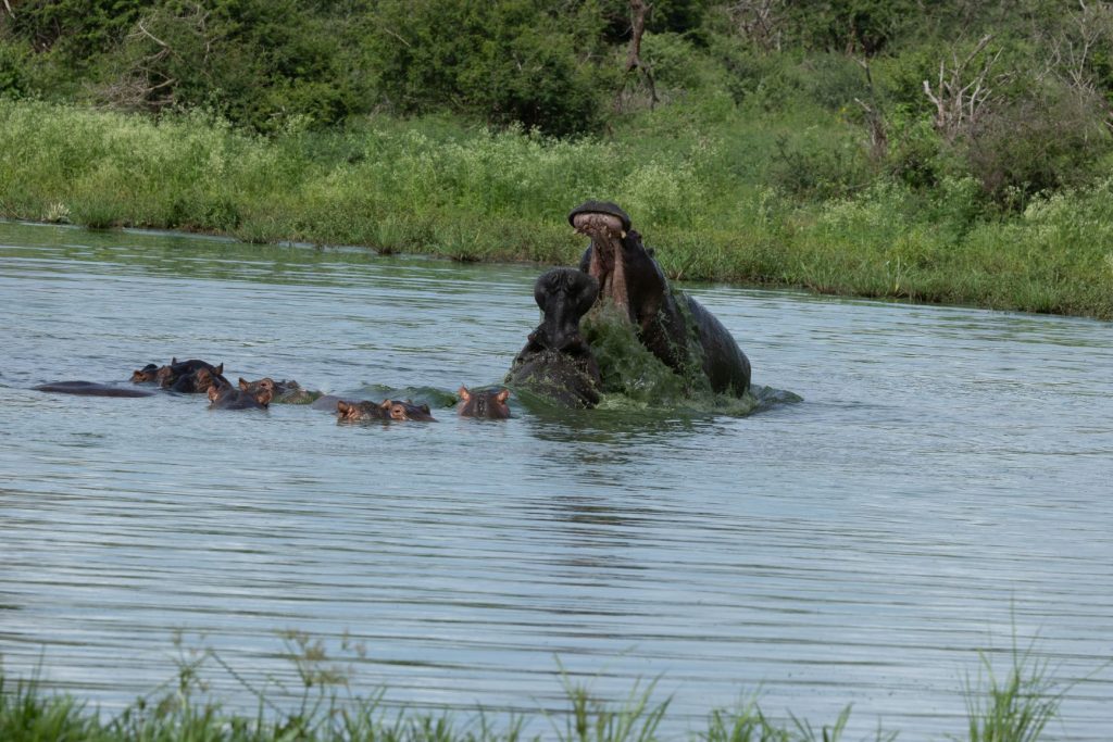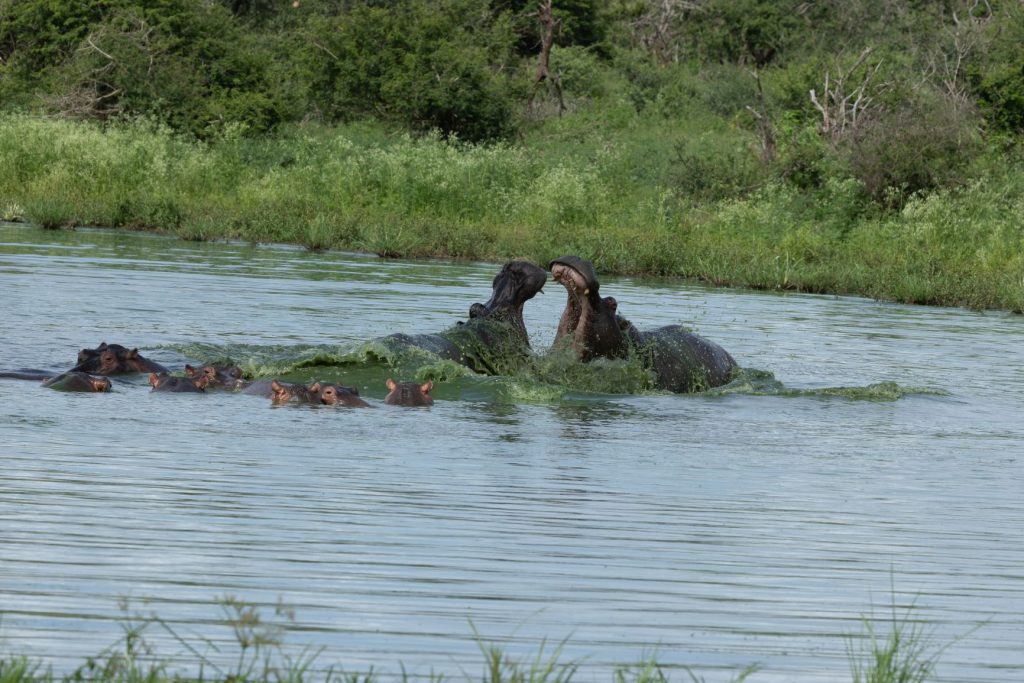 En bij sunset dam waren 2 nijlpaarden aan het vechten: