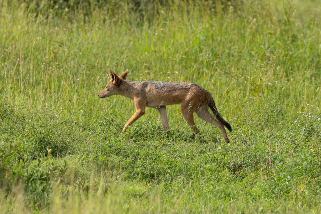 De volgende dag zijn we naar Satara gereden, zonder veel bijzondere sightings. Satara staat bekend als lion country, er zitten veel leeuwen rond Satara. De volgende ochtend zijn we de S100 opgereden, dit is de bekendste en beste weg van het Kruger, zegt men. We hebben hier inderdaad een leeuwin op de weg gezien, maar voor de rest niet erg veel bijzonders. Deze leeuwin lag plotseling voor ons op de weg, terwijl we alleen waren. Dat zijn de mooiste momenten, omdat je dan ook niet met andere voertuigen rekening moet houden. Onderweg zagen we ook nog een jakhals, die zien we niet vaak en zeker fotograferen lukt meestal niet, omdat ze erg schuw zijn. Dit keer kon ik echter goede foto’s maken.