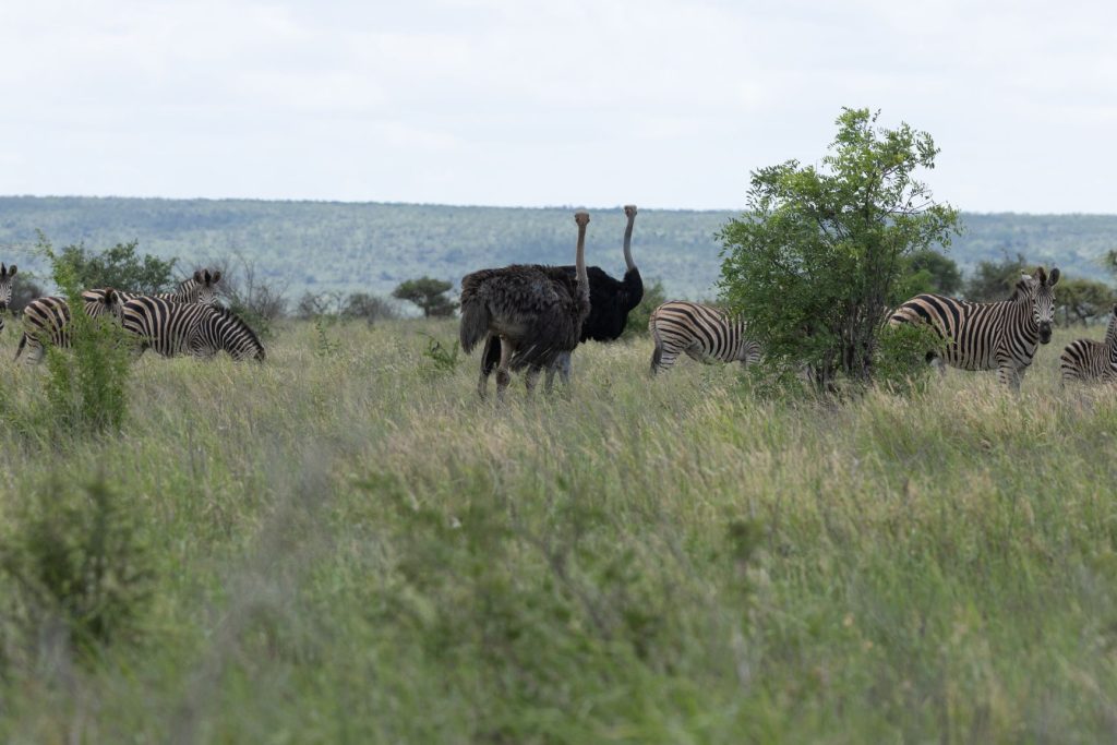 En voordat we bij Orpen rest camp aankwamen, zagen we ook nog struisvogels met jongen. Deze vogels zie je niet zo vaak in het Krugerpark, omdat het eigenlijk ook niet hun habitat is.