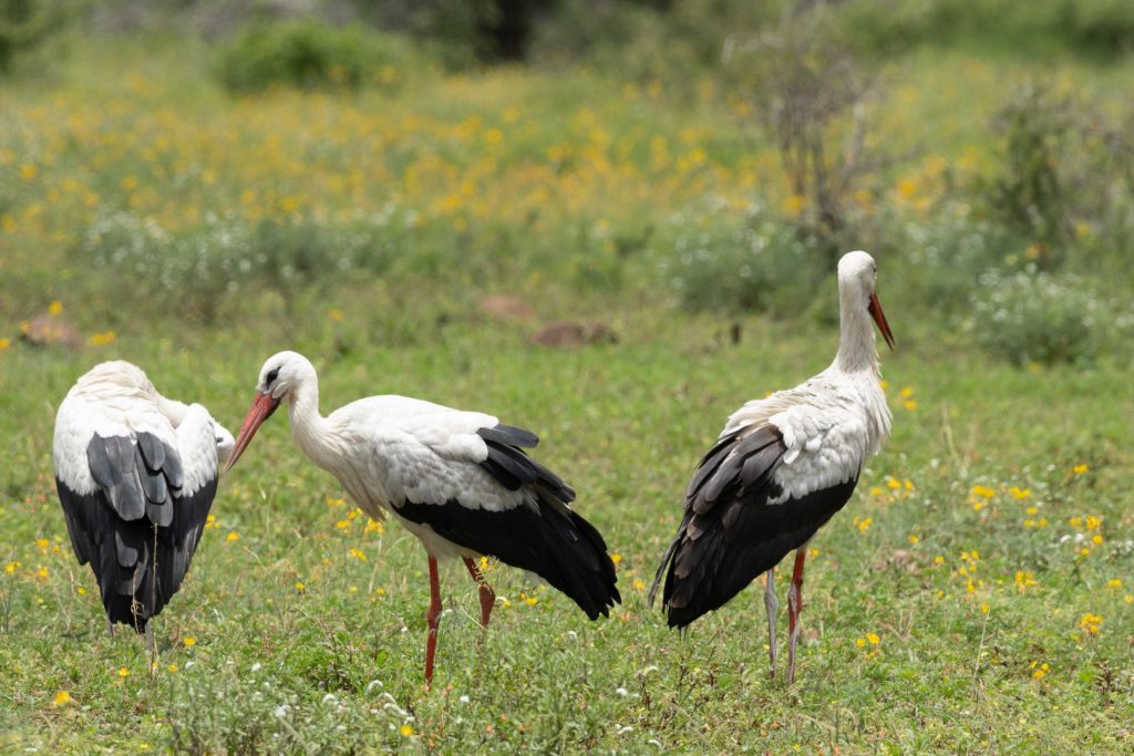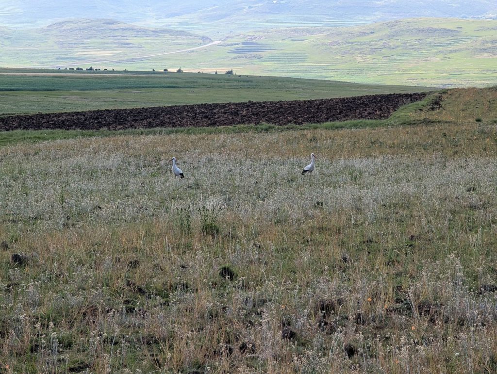 Deze omweg kost wel minstens een half uur, maar we gaan liever voor zekerheid. Onderweg kwamen we tot onze verrassing nog gewone ooievaars tegen (die je dus ook in Nederland ziet). We komen hier allerlei ooievaars tegen, maar gewone niet zo vaak: