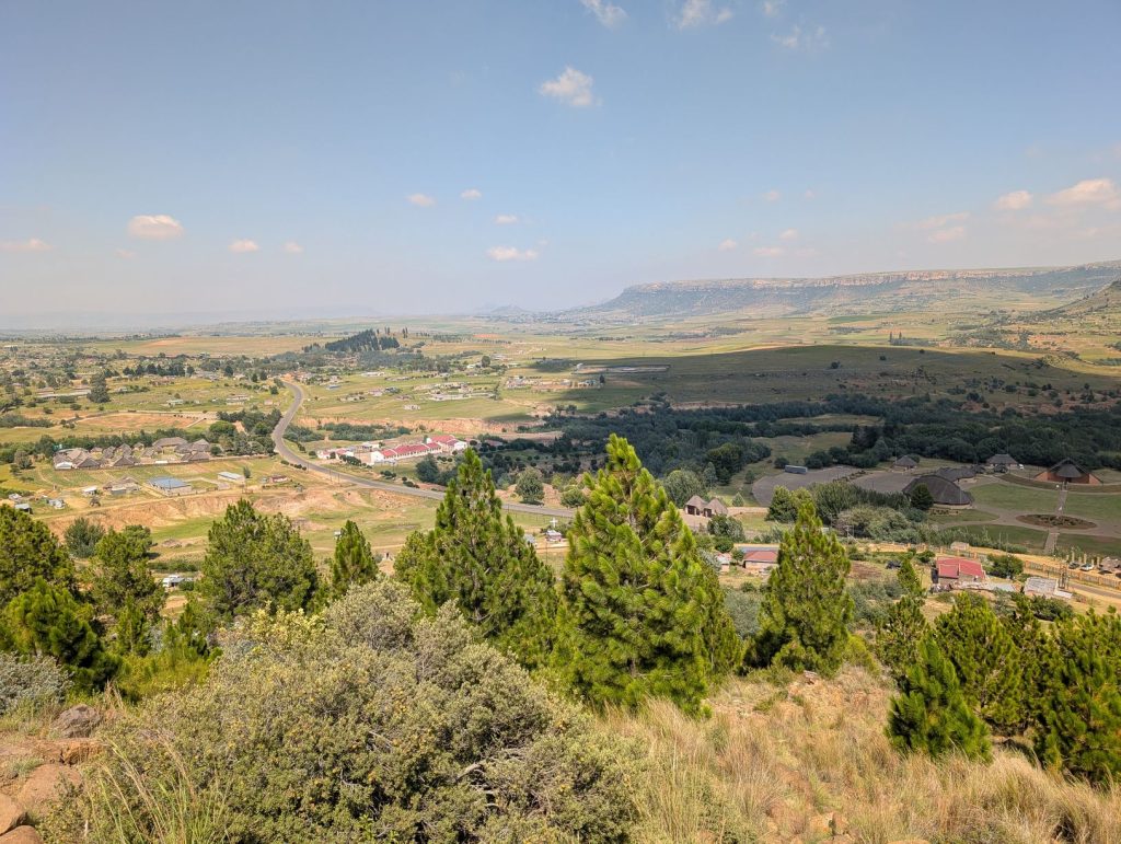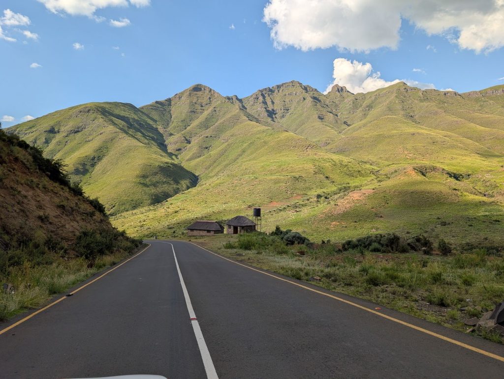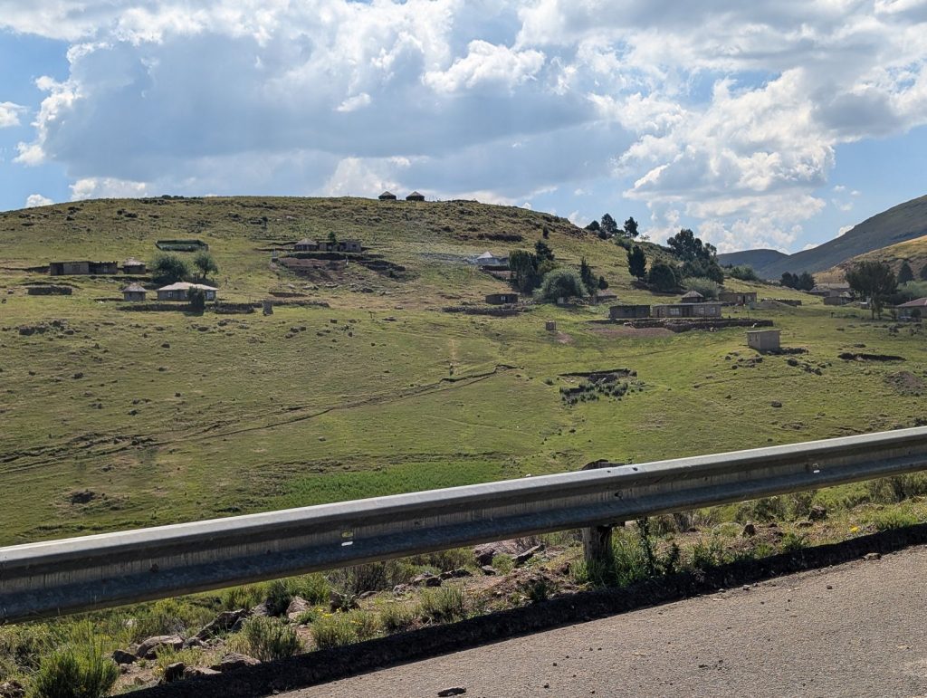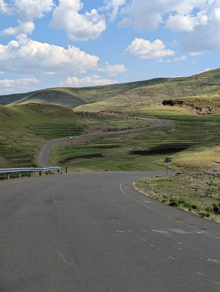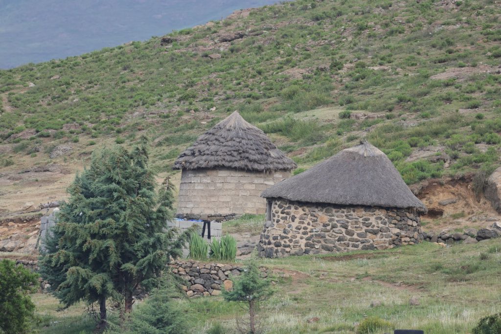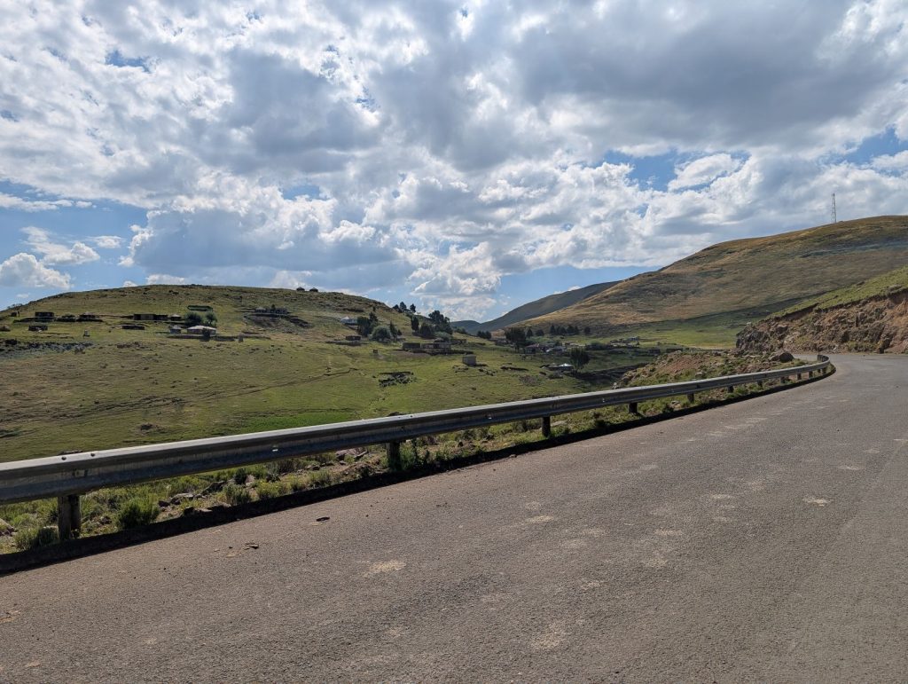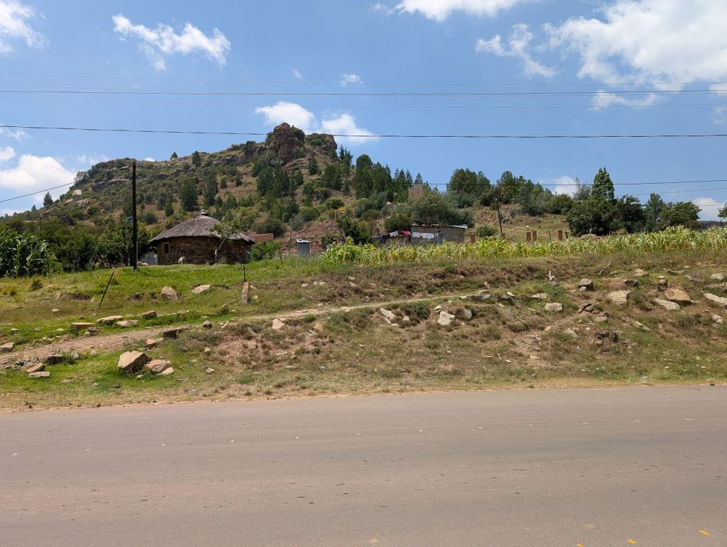 Daarna zijn we gaan rijden richting onze volgende bestemming, Semonkong Lodge. Dit is een lodge waar vooral toeristen komen om de nabijgelegen waterval te bezoeken. Het is een route van ongeveer 2 uur het land en de bergen in. Hieronder een paar foto’s van onze route naar deze lodge. Het was een route over het platteland van Lesotho, waarbij enigzins duidelijk werd dat Lesotho een arm land is. De weg was echter erg goed.