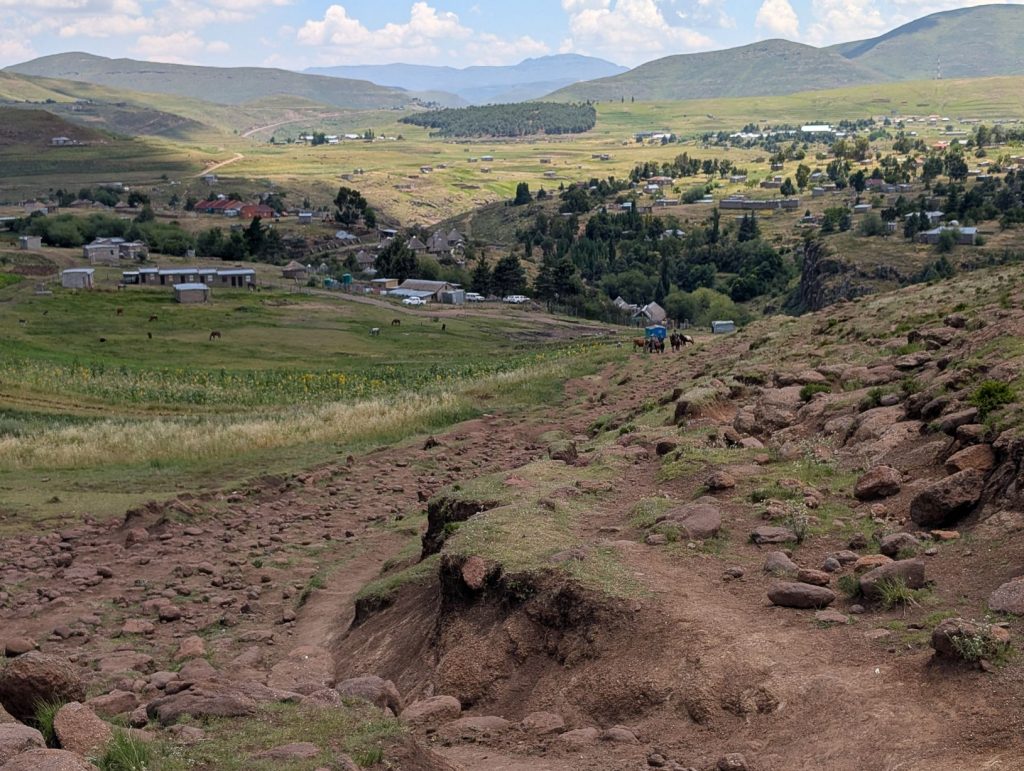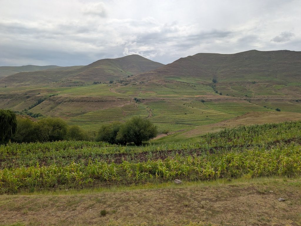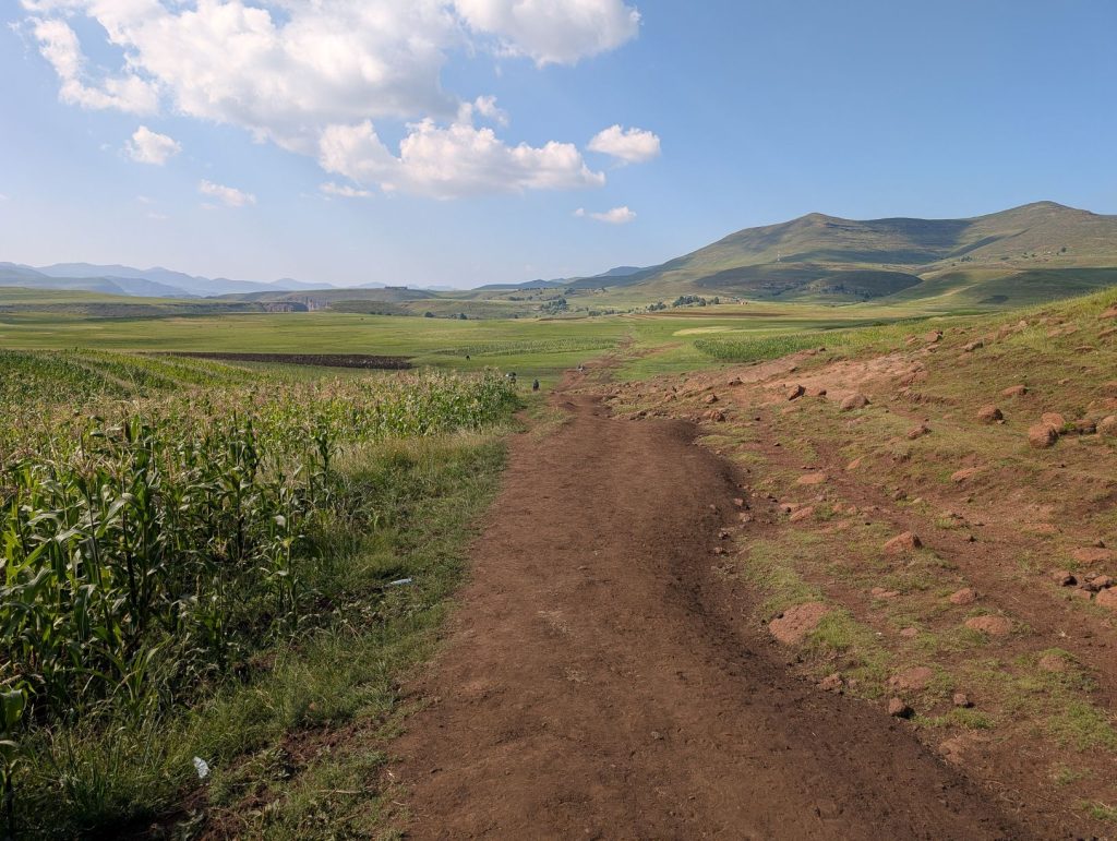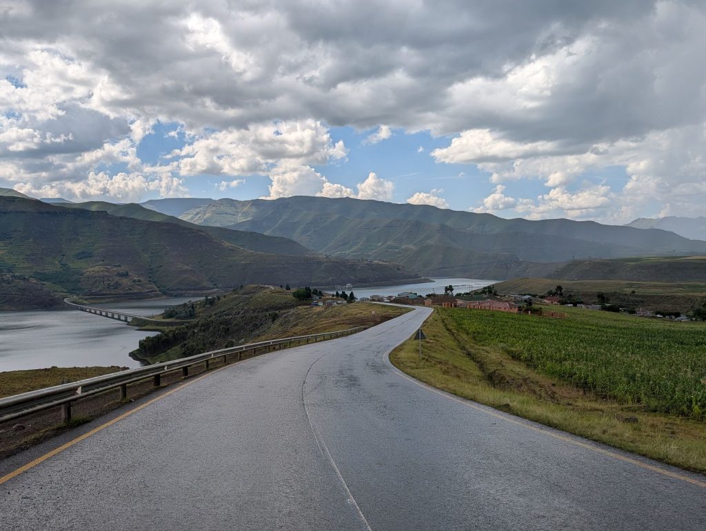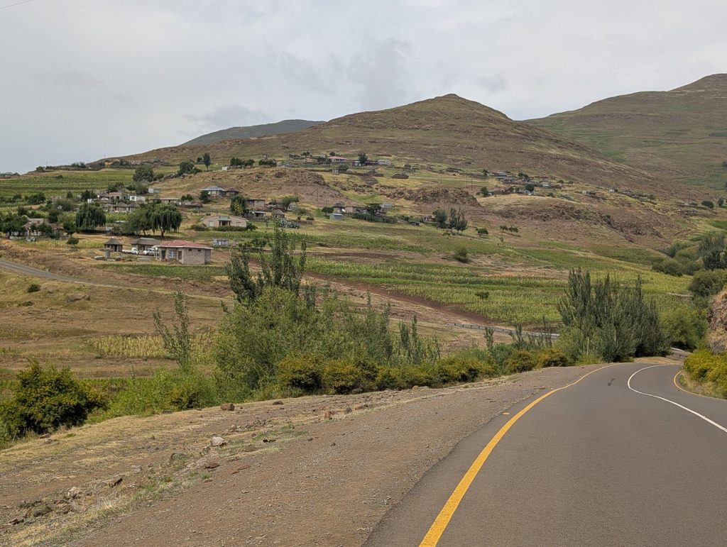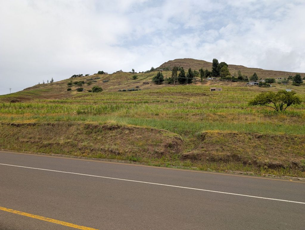 Daarna zijn we gaan rijden richting onze volgende bestemming, Semonkong Lodge. Dit is een lodge waar vooral toeristen komen om de nabijgelegen waterval te bezoeken. Het is een route van ongeveer 2 uur het land en de bergen in. Hieronder een paar foto’s van onze route naar deze lodge. Het was een route over het platteland van Lesotho, waarbij enigzins duidelijk werd dat Lesotho een arm land is. De weg was echter erg goed.