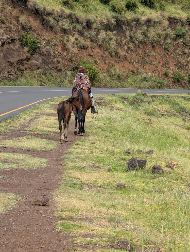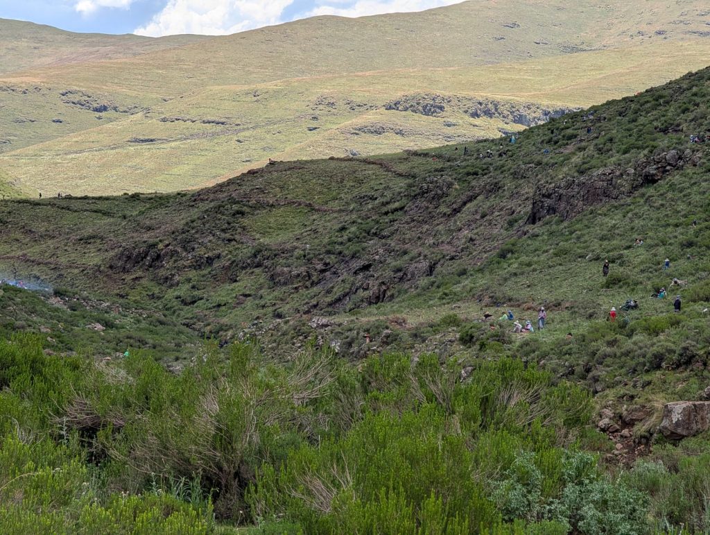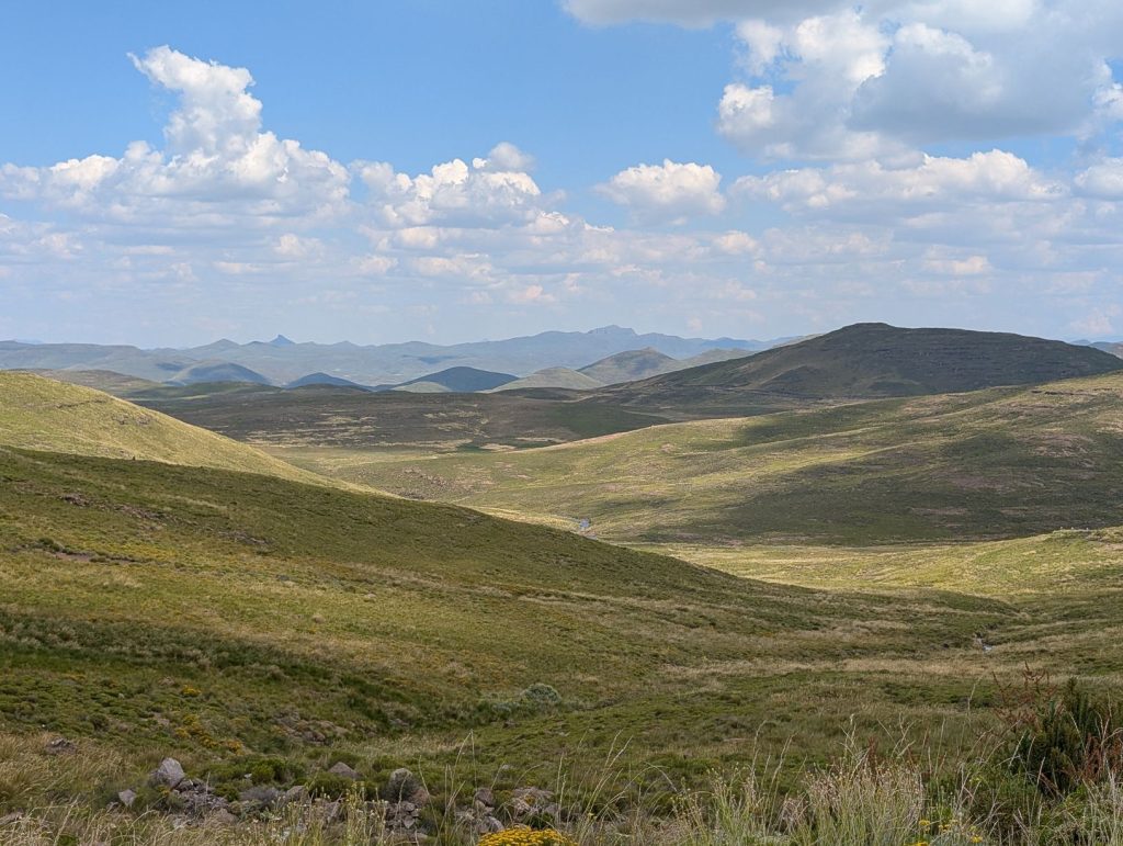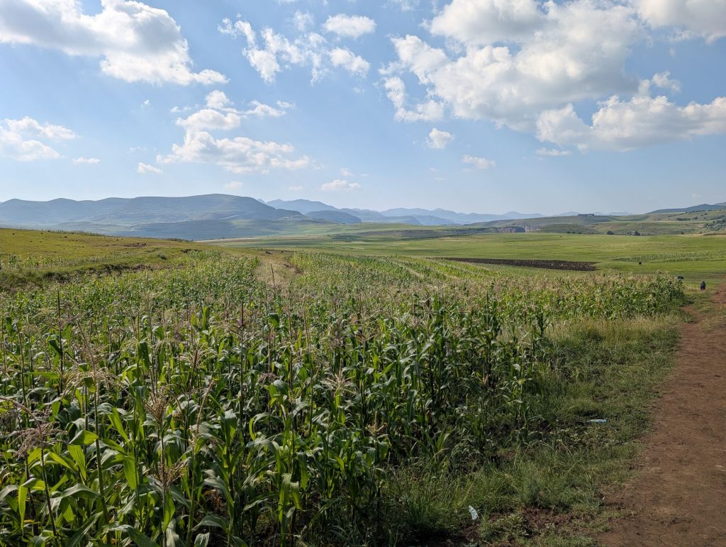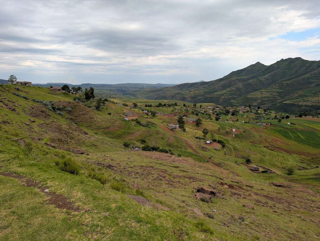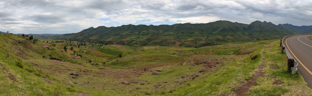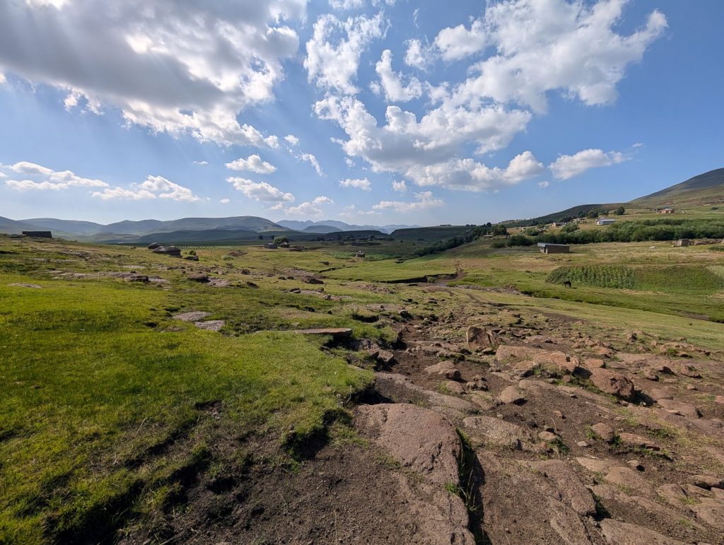 Daarna zijn we gaan rijden richting onze volgende bestemming, Semonkong Lodge. Dit is een lodge waar vooral toeristen komen om de nabijgelegen waterval te bezoeken. Het is een route van ongeveer 2 uur het land en de bergen in. Hieronder een paar foto’s van onze route naar deze lodge. Het was een route over het platteland van Lesotho, waarbij enigzins duidelijk werd dat Lesotho een arm land is. De weg was echter erg goed.