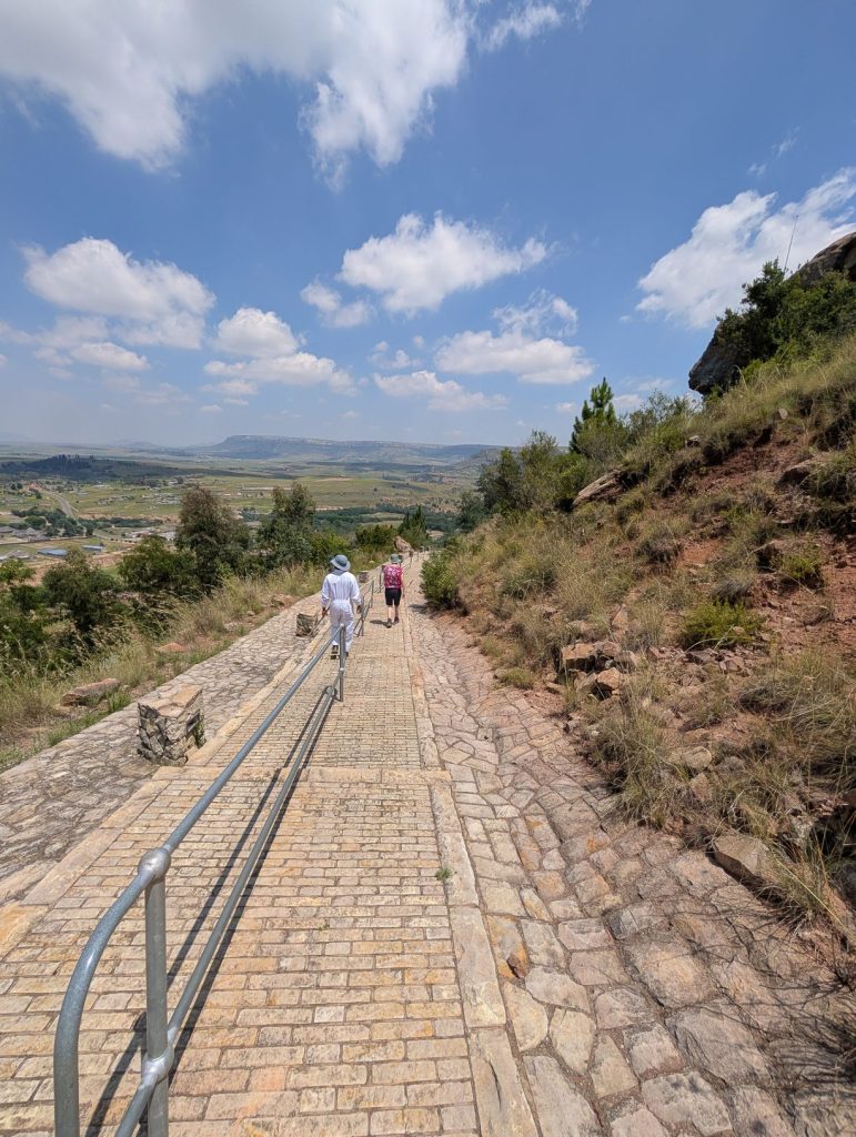 Dag 2: Na een ontbijt de volgende ochtend zijn we vertrokken richting Thaba Bosiu. Hieronder wat gegevens over deze bezienswaardigheid: Thaba Bosiu is een historisch zandsteenplateau en nationaal monument in Lesotho, gelegen op 24 km van Maseru. Als voormalig hoofdkwartier vanĀ Moshoeshoe IĀ (19e eeuw) staat het bekend als de geboorteplaats van de Basotho-natie. De “Berg van de Nacht” bleef onoverwonnen tijdens diverse oorlogen en is de laatste rustplaats van de koninklijke familie.Ā Thaba Bosiu is een cruciale locatie voor het begrijpen van de geschiedenis en de vorming van de moderne staat Lesotho.Ā
