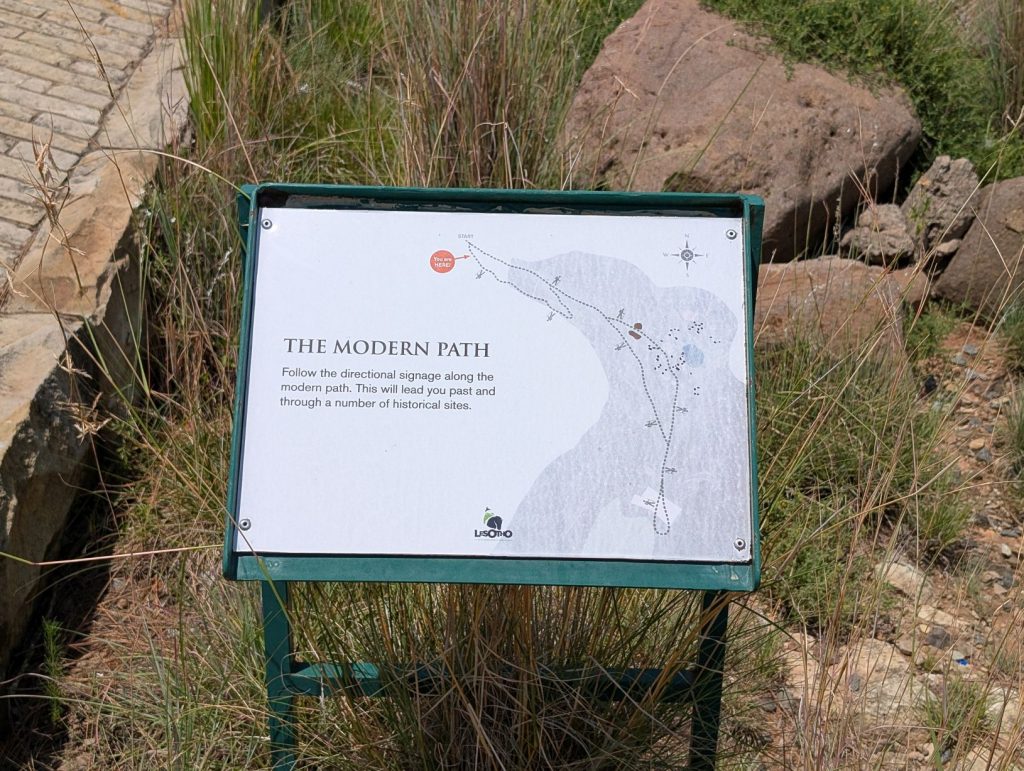 Dag 1: We besloten dit keer weer dezelfde route te rijden, via het Golden Gate National Park en dan naar Maseru, de grensplaats en hoofdstad van Lesotho. De reis verliep verder vlot, waardoor we al rond half 4 bij de grens waren. Waar het de vorige keer ons 1 uur kostte voor alle formaliteiten, waren we nu binnen 10 minuten door beide grenscontroles heen. Bij de Lesotho grenspost hoorden we ook dat we eigenlijk verkeerd stonden, we hadden bij de VIP’s moeten staan, blijkbaar worden toeristen als VIP’s gezien. De verdere reis naar ons eerste hotel (dezelfde dan de vorige keer) verliep vlot en daardoor waren we al rond 4 uur op de plaats van bestemming voor de eerste dag. Waar we de vorige keer 2 nachten gepland hadden in dit hotel, hadden we nu maar 1 nacht geboekt (de overgebleven overnachting van de vorige keer, die we toen al betaald hadden). Ik had namelijk gezien dat er een bezienswaardigheid tamelijk dichtbij was, en dat we daarna nog gemakkelijk naar ons volgende hotel konden rijden.
