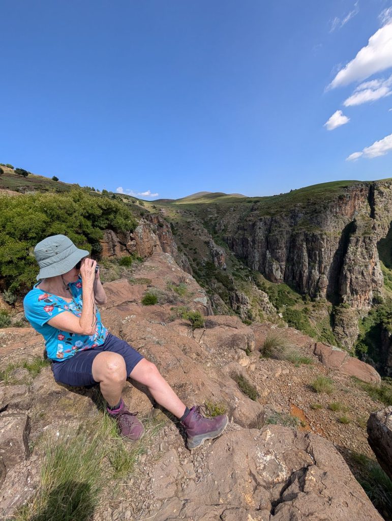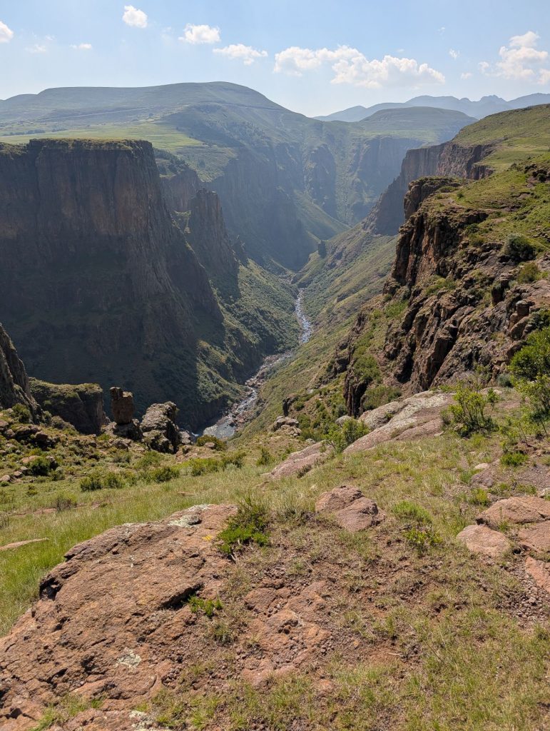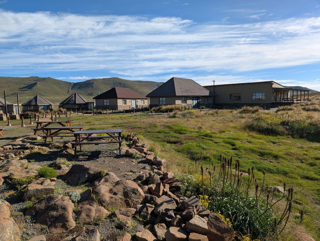 Het dorp zelf (Semonkong) was erg rural en de weg naar de lodge aan de rivier was behoorlijk slecht. Maar de lodge zelf was vooral rustiek. En hier kwamen we ook weer buitenlandse toeristen tegen. We hadden hier een huisje gehuurd, dat een behoorlijk stukje hoger dan de lodge zelf lag. We moesten dus elke keer voor de maaltijd afdalen en na het eten weer klimmen over een steil paadje naar ons huisje. Vanuit ons huisje zagen we ook vogels zitten. Dit bleken Soutern Bald Ibissen te zijn, een bedreigde vogelsoort.