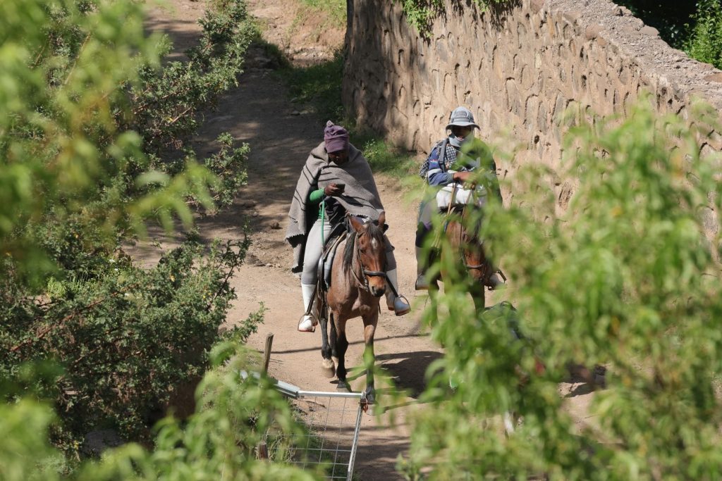 Dag 3: De volgende ochtend zijn we na het ontbijt vertrokken richting de waterval. Zoals gezegd mocht het zonder gids, maar ik had wel een route op Alltrails gevonden en dat was maar goed ook. Want er waren vaak meerdere paden en het was niet duidelijk welke naar de waterval leidde. De route leidde door boerenland en we kwamen veel mensen te voet, te paard of met ezels tegen. Vergeleken met Madagascar, waar we vorig jaar zijn geweest, lijkt het land net iets minder arm. De mensen verplaatsen zich toch ook redelijk vaak te paard, iets wat we in Madagascar nooit gezien hebben, daar was het vooral lopend en/of met een koeienwagen.