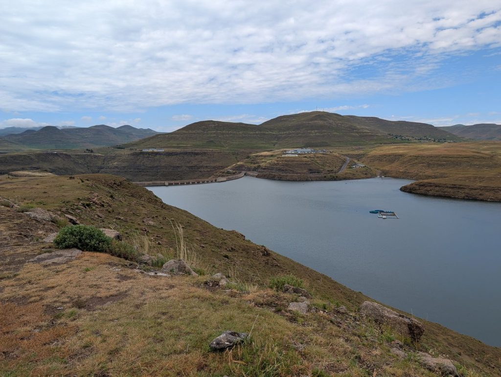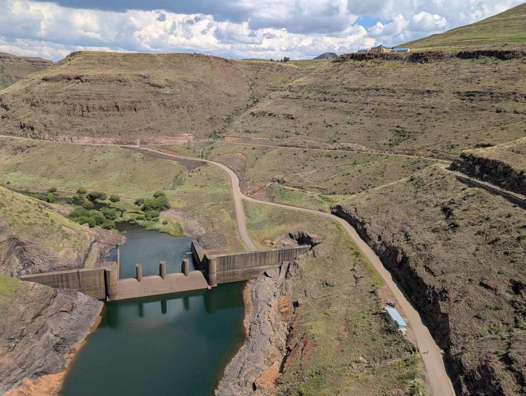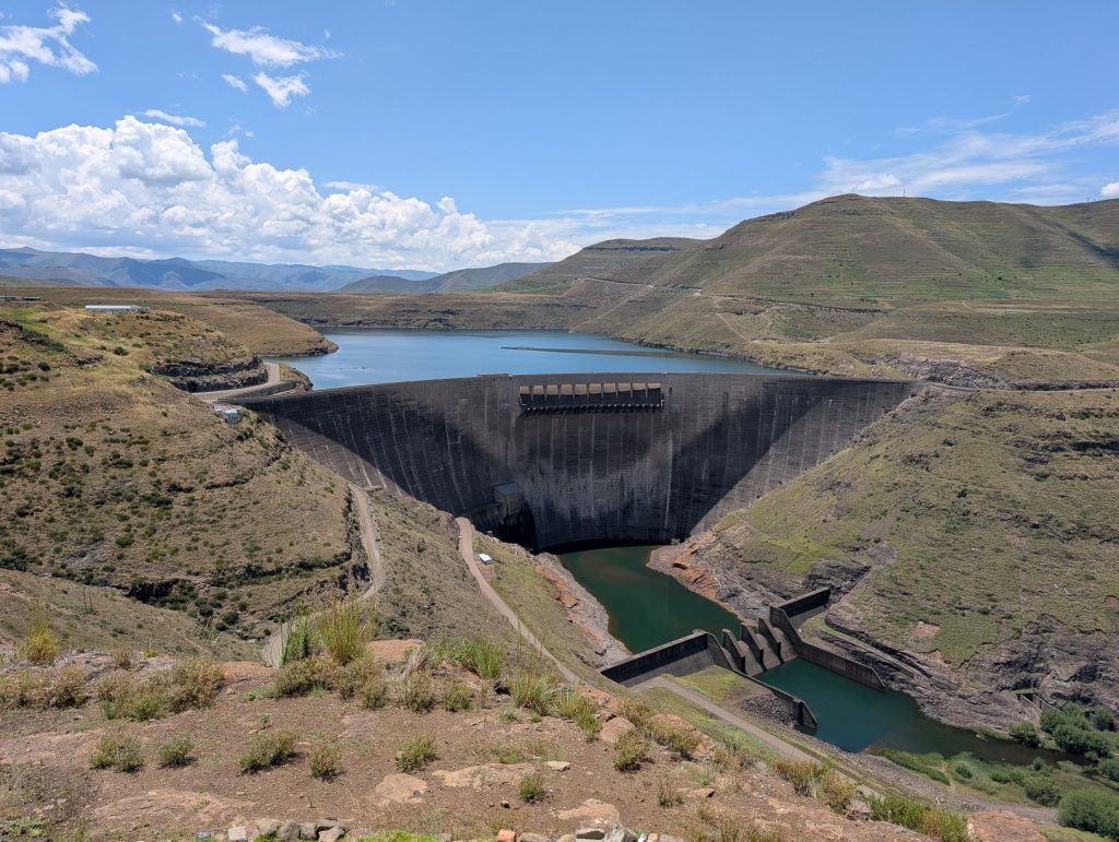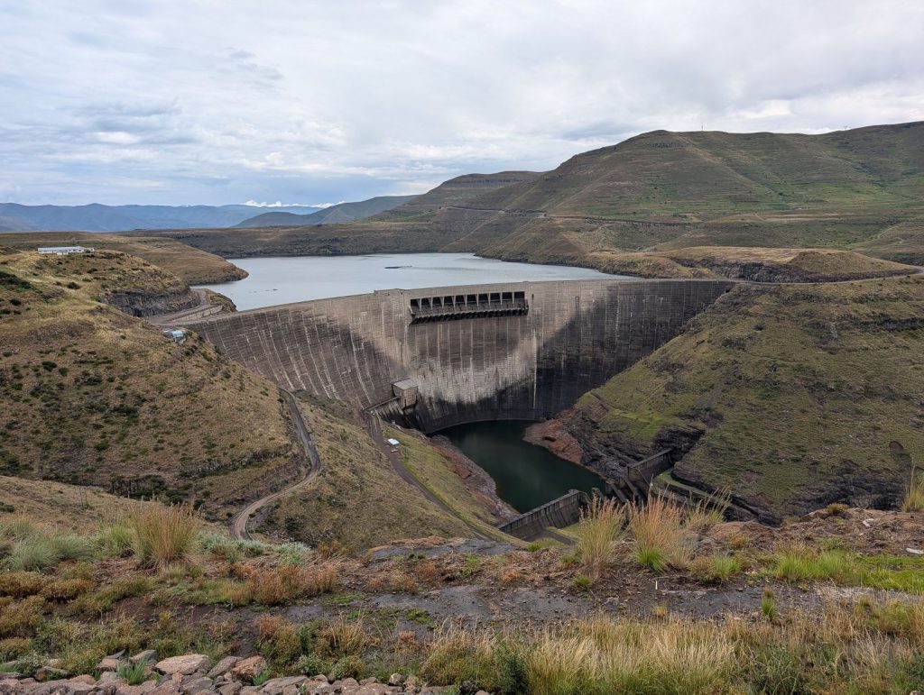 De Katse dam is een grote dubbel gebogen betonnen boogdam. Het is met een hoogte van 185 meter een van de hoogste dammen op het Afrikaanse continent en maakt deel uit van het Lesotho Highlands Water Project. Het stuwmeer is smal en diep.Ā Het doel van de dam is wateropslag en watervoorziening aan Zuid-Afrika en wordt ook gefinancierd door Zuid-Afrika. Daarnaast wordt en elektriciteit opgewekt dat ten goede komt aan Lesotho. Met grote ondergrondse buizen wordt het water naar Zuid-Afrika getransporteerd. Een groot deel van het water dat in Johannesburg en Pretoria wordt gebruikt komt hier vandaan.Ā De dam is 60 meter dik aan de onderkant en heeft een kam van 710 meter lang en is gebouwd tussen 1991 en 1996 door een internationaal consortium. Inmiddels zijn er al weer uitbreidingen gemaakt en op een van de volgende dagen zagen we ook nog een brug die gebouwd wordt voor weer een ander stuwmeer.