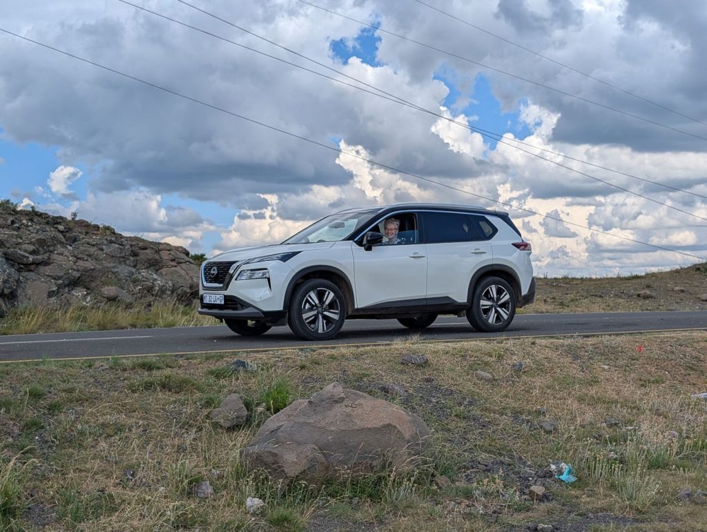 Waar we de vorige keer een bakkie met 4×4 hadden gehuurd, heb ik nu een Nissan Xtrail 4×4 op het vliegveld van Johannesburg kunnen huren. Dit is een SUV en niet al te groot, in plaats van een bakkie. En bij aankomst op het vliegveld bleek dat dit een luxe uitvoering was, met alle toeters en bellen, en daarnaast ook nog gloednieuw, er stonden nog maar 2000 km op de teller. Het rijden in deze auto was dan ook een verademing ten opzichte van de GWM (Chinees) bakkie van de vorige keer. Het was eerst niet zo duidelijk of het een 4×4 was, maar uiteindelijk bleek na enig zoeken het toch echt een 4×4 te zijn (het stond niet achterop de auto).