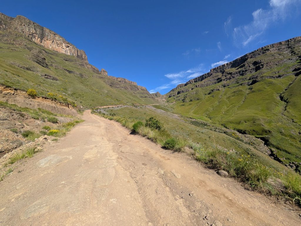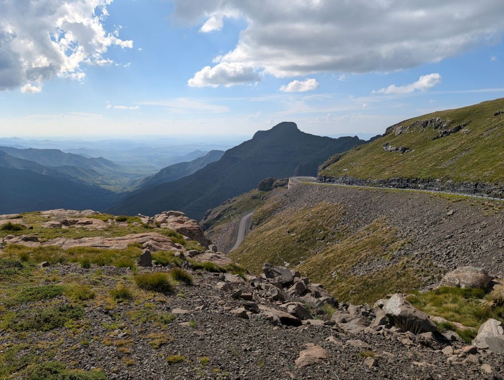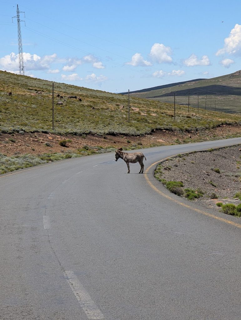 Onze volgende bestemming was de Sanipas. Dit is een van de bekendste passen van Zuid-Afrika en is eigenlijk de grens tussen Lesotho en Zuid-Afrika. De pas zelf is onverhard en erg steil. We moesten die dag bijna 5 uur rijden om bij de pas uit te komen. De weg was soms behoorlijk slecht (veel putholes), maar later werd deze beter. We gingen nu echt het hooggebergte in, de Sanipas zelf ligt ook bijna op 3000 meter hoogte. De hoogste pas die we zijn gepasseerd was nu 3240 meter.